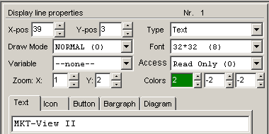 Beim Erstellen von Anzeigeseiten mit umschaltbaren Tag / Nacht-Design sollten die die Vorder- und Hintergrundfarben in den einzelnen Anzeigezeilen auf -1 gesetzt werden. In den oben abgebildeten Screenshots erscheint der Text "MKT-View II" unabhängig von der Tag/Nacht-Umschaltung immer grün, weil in der entsprechenden Anzeigezeilen-Definition die Textfarbe 'fest' (d.h. nicht als "-1") definiert wurde: