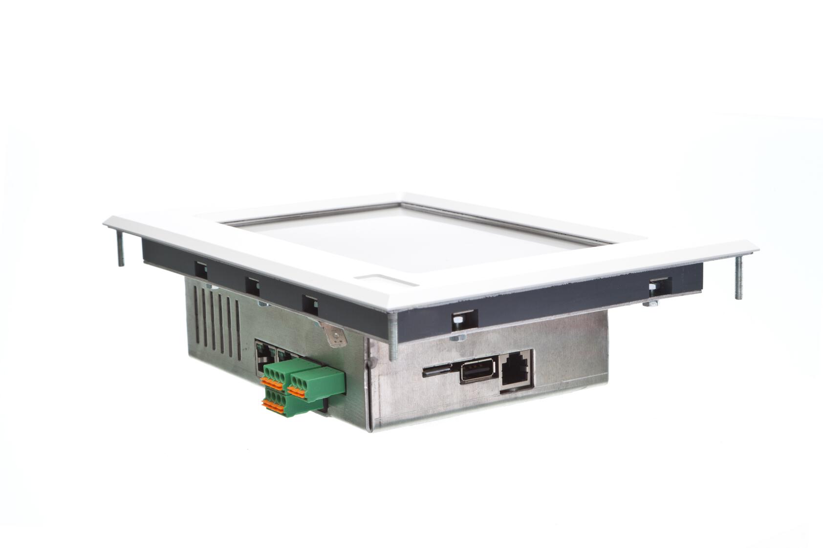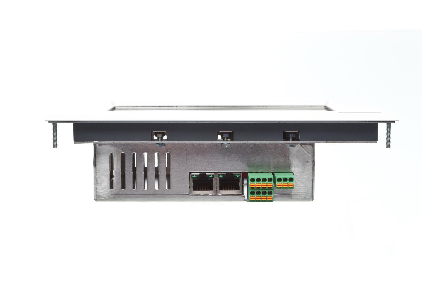 Die mit CODESYS V3.5 (IEC-61131-3) programmierbare Steuerung integriert ein 7″ touch Display, einen EtherCAT-Master und einen CANopen-Master/Slave.